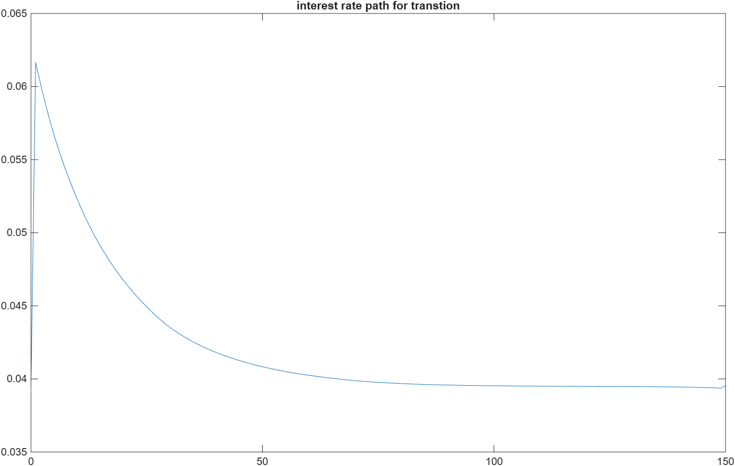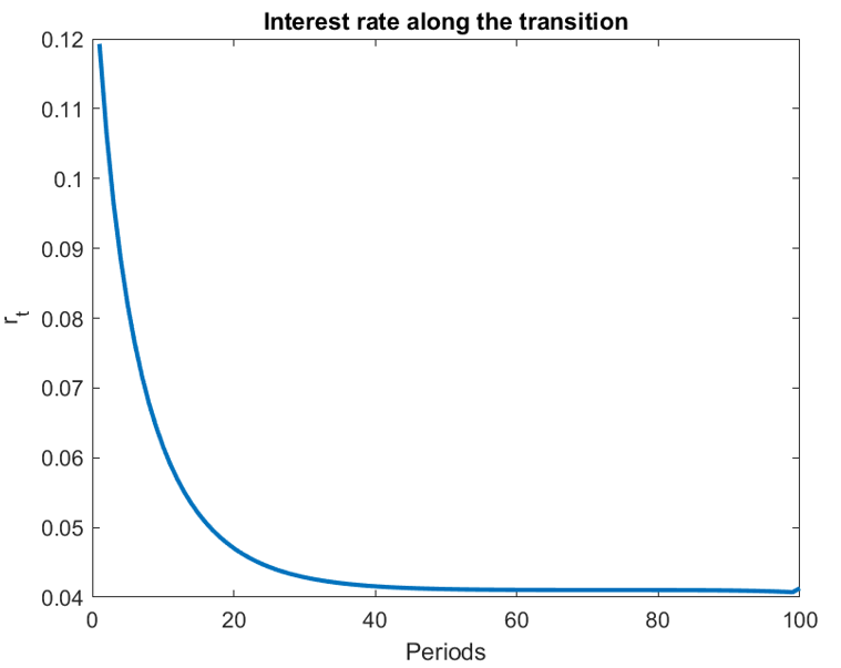 PricePath=TransitionPath_Case1(PricePath0, ParamPath, T, V_final, StationaryDist_init, n_d, n_a, n_z, pi_z, d_grid,a_grid,z_grid, ReturnFn, FnsToEvaluate, TransPathGeneralEqmEqns, Params, DiscountFactorParamNames, transpathoptions,vfoptions, simoptions);
